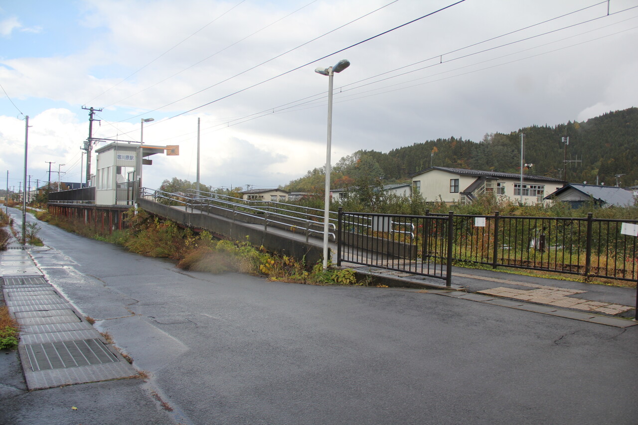 大鰐線開業の昭和27(1952)年に開業した当駅です。その割に小綺麗なのは平成14(2002)年1月に移転していることによります。当駅前にある宿川原農道踏切から直進した先にかけられていた橋が移転し、駅が架け替わった宿川原大橋に近い場所へ移転したということで同時期に新設された石川プール前駅と同じコンセプトの構造で生まれ変わってたためです。