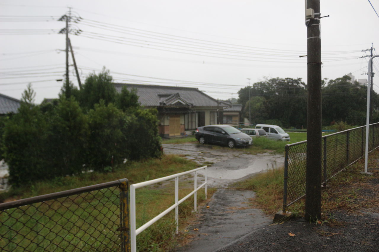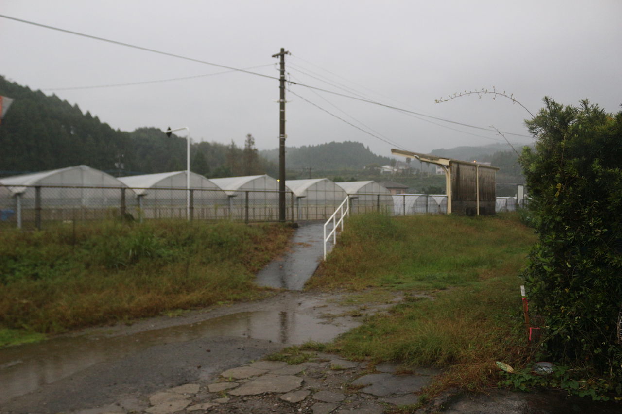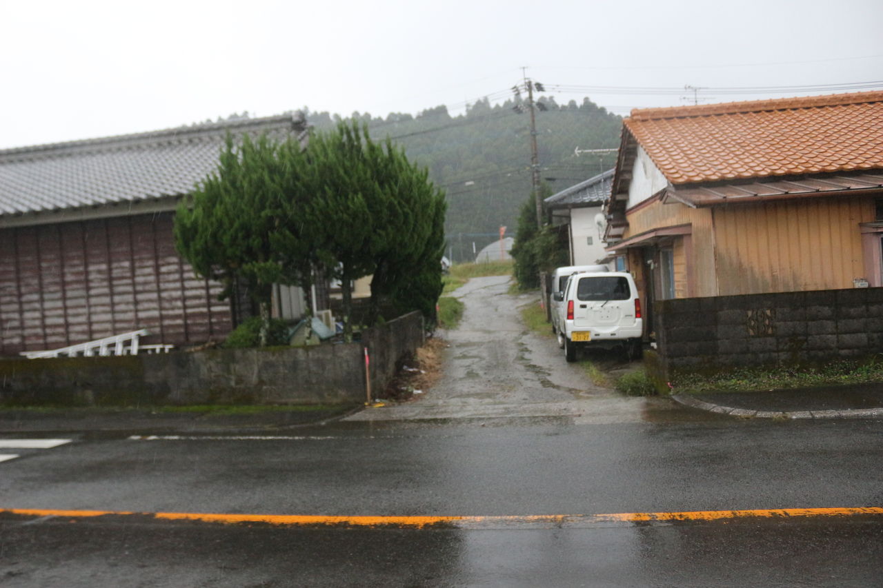 そのスロープを上から望むとこんな感じ。南方駅のように一般住宅向けの私道ではないのかと思えるような小さく未舗装の通路を出て公道に至ることになります。訪問日は降雨でスロープを降りるといきなり大きな水溜りと言うかなりの悪条件でした。