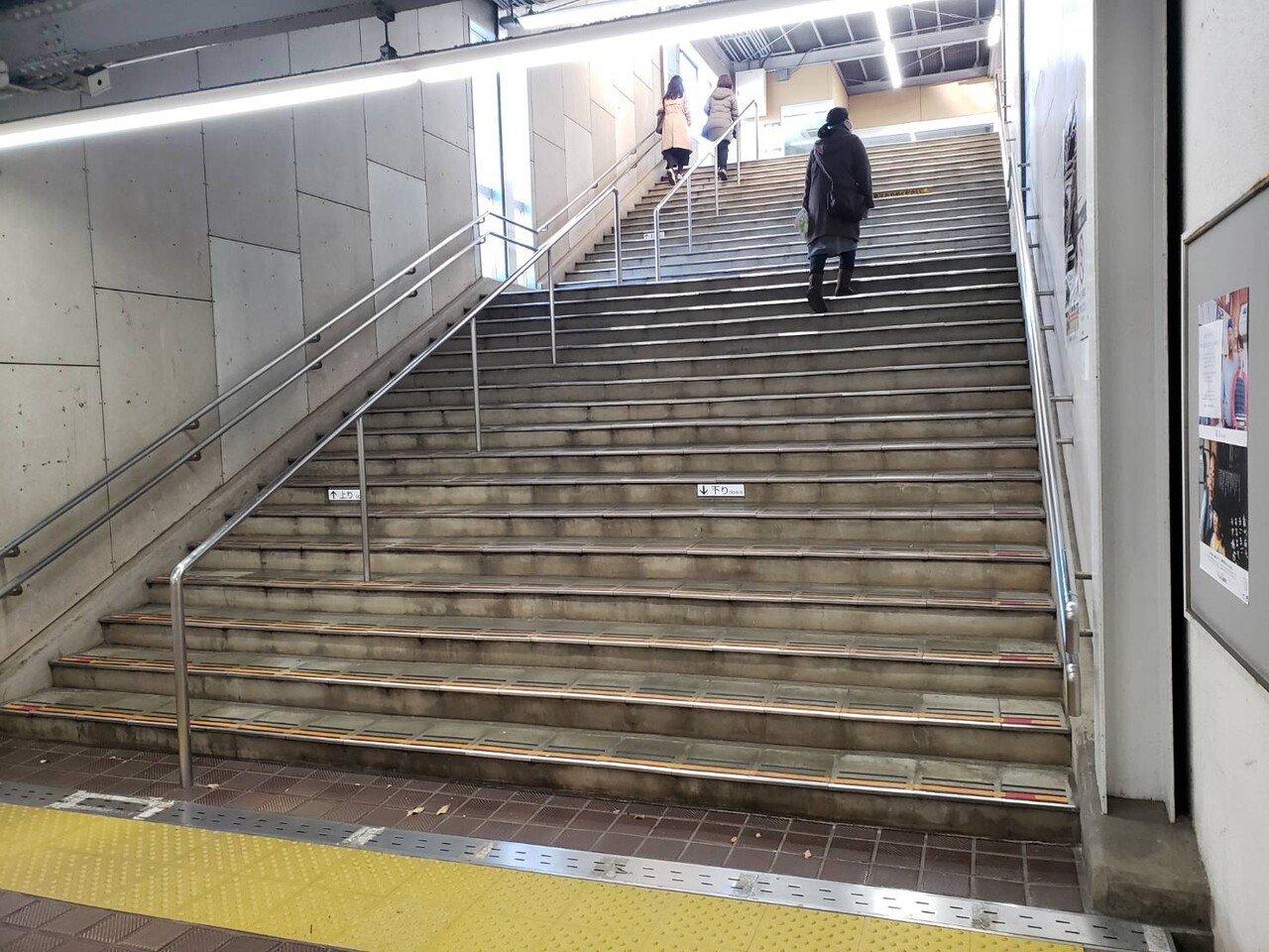 地上からホームへの階段横幅は広めですが、エスカレータの設置はありません。