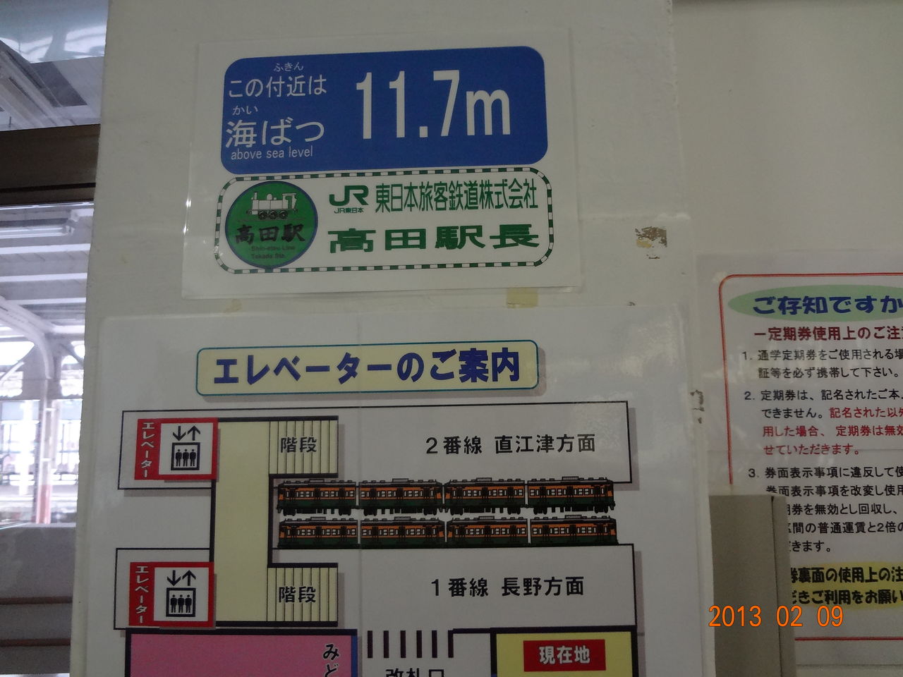 美魔女な駅は構内の跨線橋がリニューアルされている点にも見られます。上越エリアの駅では2例目というエレベータが付いていて、利便性が高いものに投資をしているところ、キレイ好きな美魔女さんならではですな。なおこの跨線橋は当駅の南高田駅寄りに設置されています。旧来の跨線橋は春日山駅寄りに設置されていましたが、現在は撤去されています。