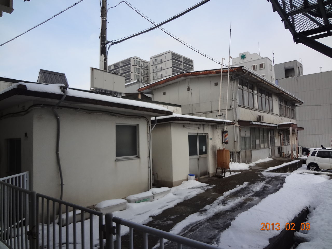 この画像の真ん中の建物にご注目。なんと鉄道敷地内に理髪店の回転看板があります。恐らく鉄道会社の組合が経営しているお店のようです。当駅が美魔女であると勝手に言い張る所以でもあります。