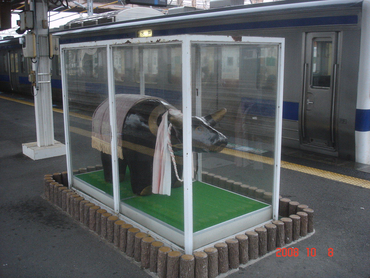 ホーム上には常盤牛の置物があります。