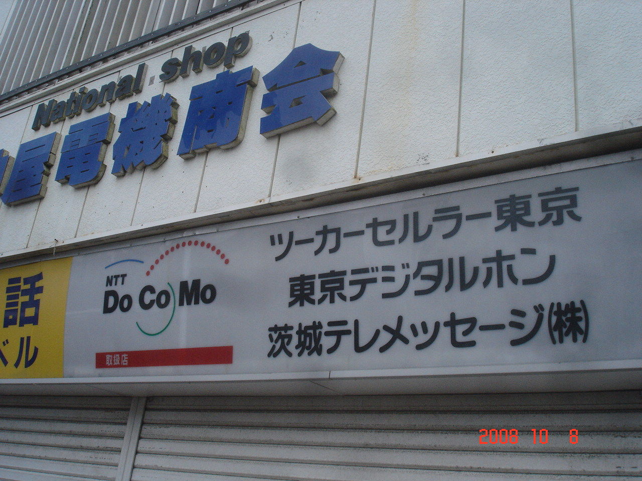 2008年に訪問した際の駅前の電気屋さんの看板…ここが茨城であることを実感します。なお茨城テレメッセージは2000年に会社を畳んでいます。