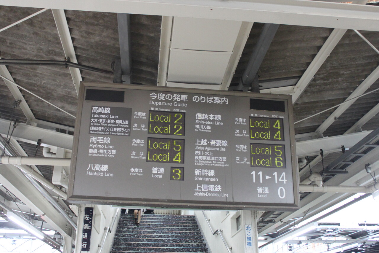 構内は複線上の2面2線。上越線の他に両毛線、吾妻線の列車も通るので意外と列車の本数は多いです。
