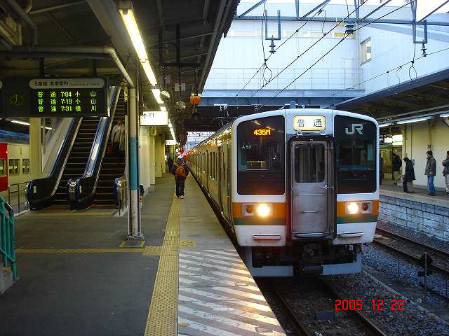 5番線ホームに停車中の小山行です。