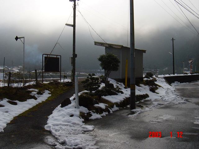河戸、今井田の両駅のようなシンプルな構造の駅でした。標高が上がり坪野駅の周りには見当たらなかった雪がありました。