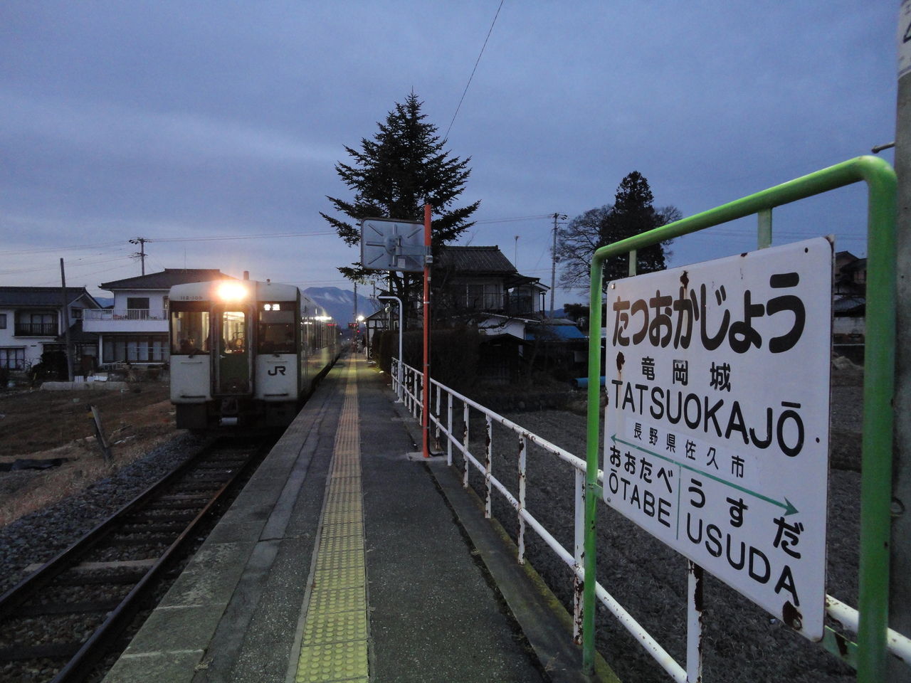 ホーム上には名所案内の地図があります。ここから龍岡城五稜郭へ近いように見えますが、実際には隣の臼田駅からのほうが近く、またタクシー常駐も臼田駅なので、龍岡城へのアクセスとしてはあまりいいとは言えません。近隣には高校があるようで、朝夕はその通学者で賑わっているようです。