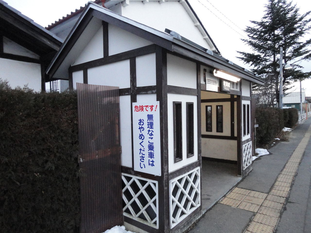 当駅は「龍岡城」を名乗っているからか、ホーム上の待合室はお城を意識したデザインになっています。