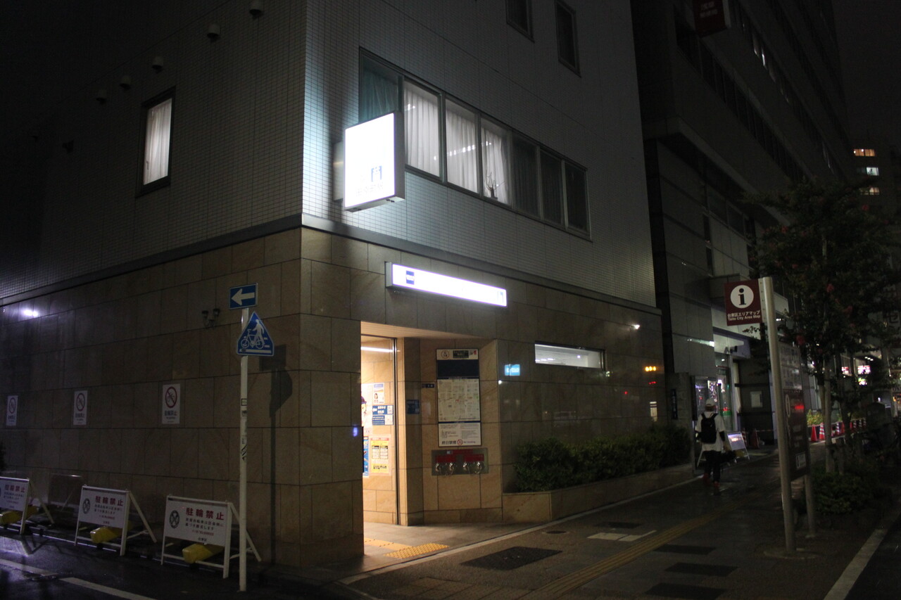↑台東区西浅草一丁目1番4号の浅草ゆきエレベータ口です。各駅のバリアフリールート確保のため改札口とは別にエレベータ専用の改札口を設け、そこに駅事務室ビルを建てています。どうせエレベータ設備のために建物を作らなければならないのなら、いっそ事務室を作ってしまえということなのでしょう。