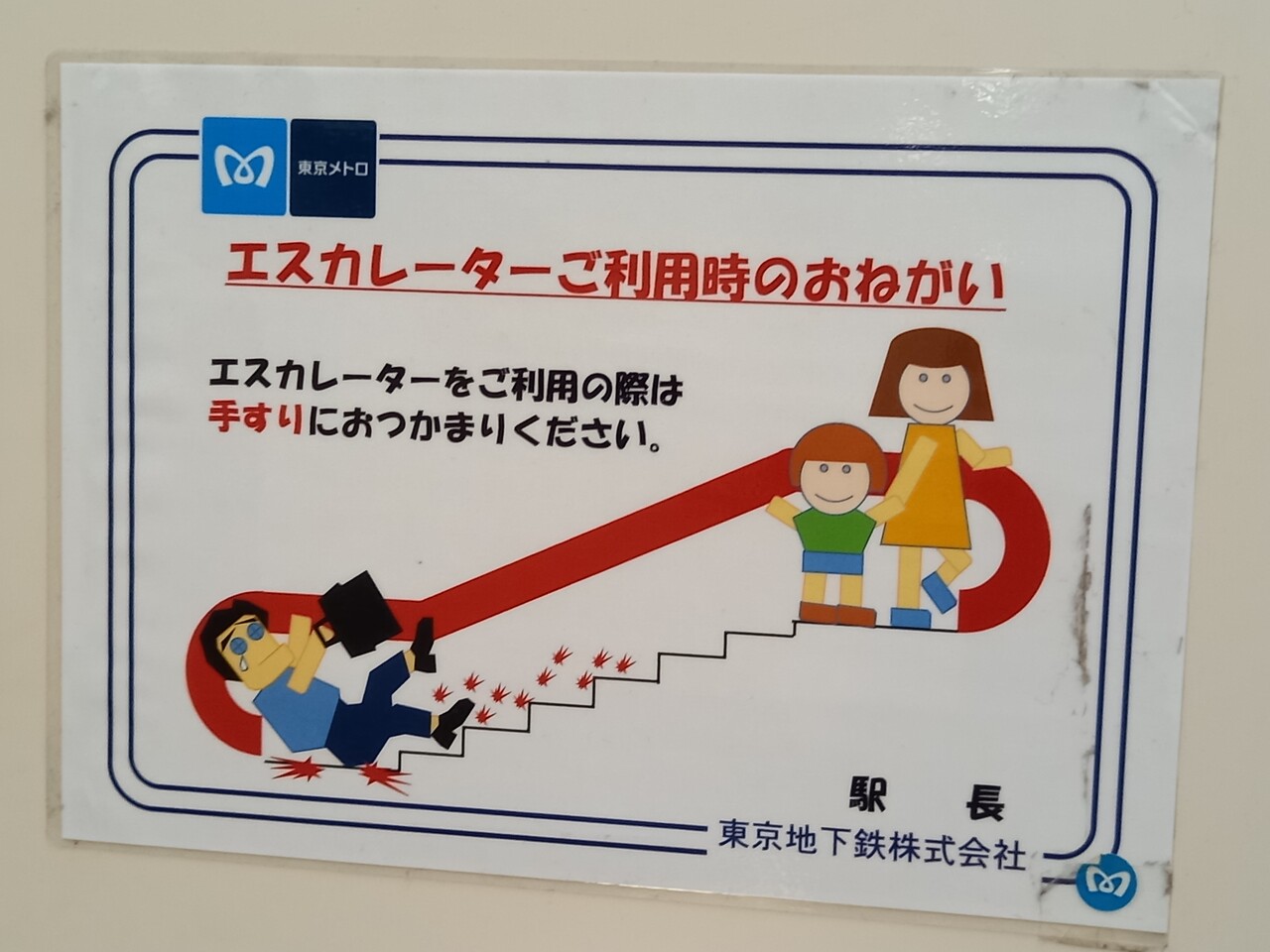 ホーム階から改札階への階段・エスカレータです。東京メトロ公式サイトによればホーム階は地下3階で、改札階は地下2階と表示がありますが、地下3階はえらく深いんですな。