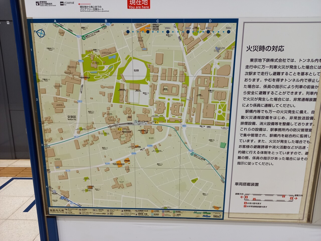 1番出入口は駅名の元となっている東京大学(農学部)の敷地に設けられています。