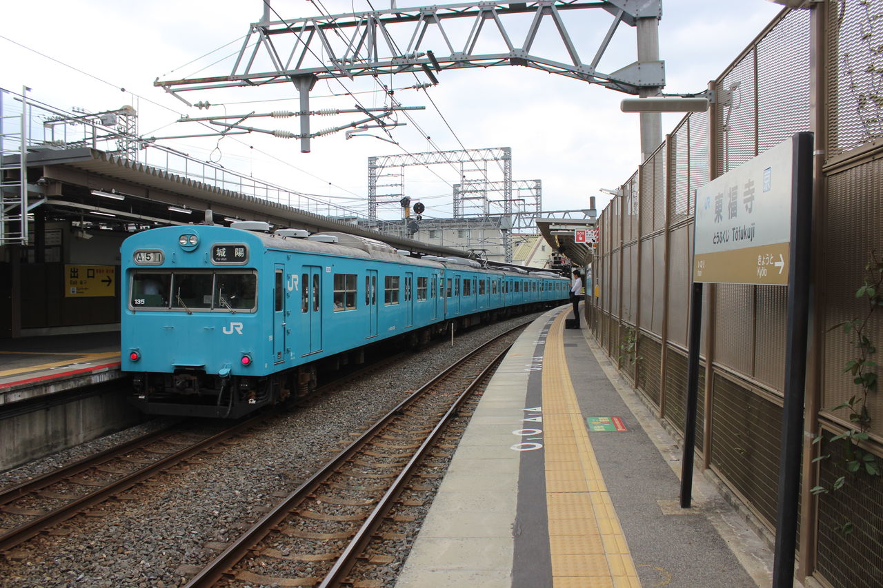 奈良線にスカイブルーの103系が…首都圏では2006年に退役した103系で、しかもそれ程改造の手が加えられておらず、ドア脇の小窓がつぶされている以外はほぼ原形を留めている車両が2015年に関西圏ではバリバリの現役というから驚きました。