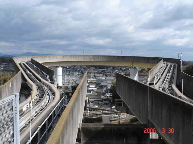 ループ線を列車が通る様子をgifアニメにしてみました。左側から電車が出ていき、ループ線を回って右側へ戻ってきます。よく見るとループ線のフェンスが途切れてる部分がありますが、これは高架の線路を高蔵寺方面へ延伸させる野望(計画)があった名残りですが、延伸するよりも前に路線そのものが廃止されてしまいました。