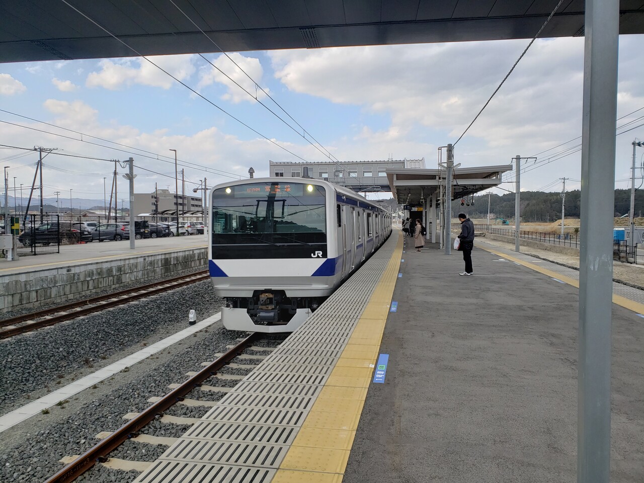 構内は単線上の2面3線。訪問をした2018年1月現在で当駅~浪江駅間は不通となっていたため、いわき方向へ上る列車が3番線を使って行き来していました。