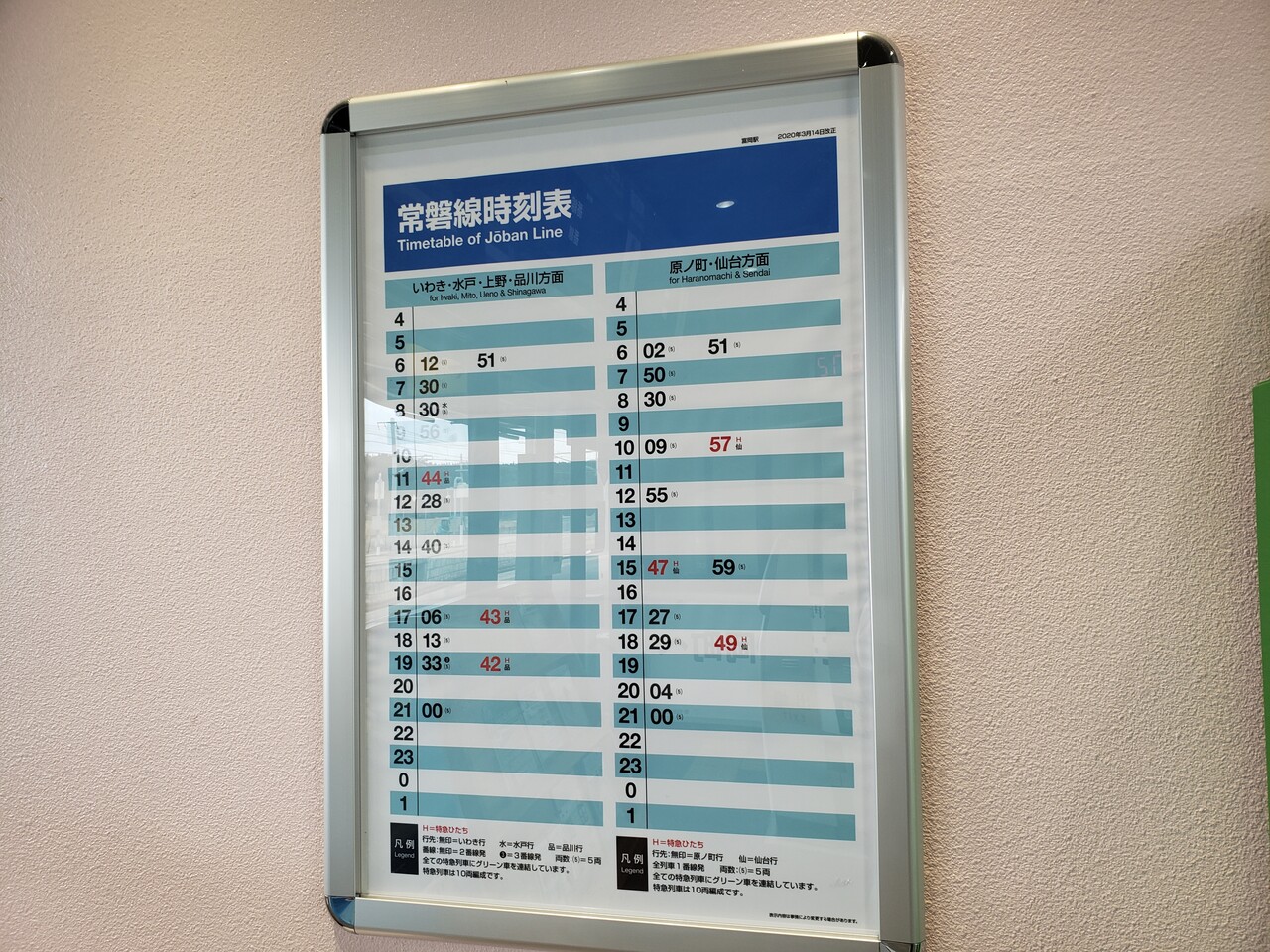 運転本数はこちら。全線復旧により当駅を終着・始発とする列車は消滅しました。いわき駅以東に設定された3往復の特急ひたちは全列車が停車します。