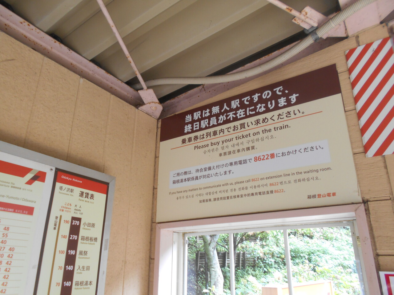 この待合スペースに終日無人駅宣言が記されています。