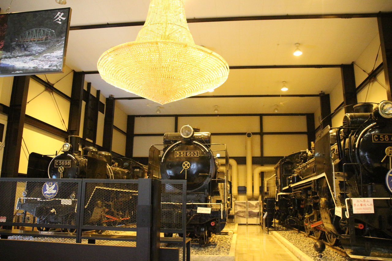 当駅には車両の展示スペースが併設されていて、蒸気機関車が見学できます。