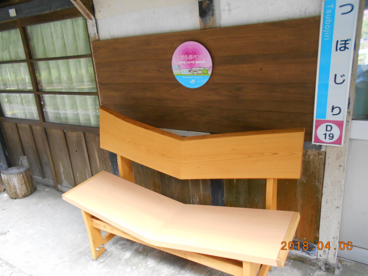 左右に傾斜がついた形状の椅子です。両側に座れば二人の距離が自然に狭まる?!確かにこれは他に利用者がいる状況では使うのを躊躇したくなりますな。利用者がほぼ居ない当駅ならではの設備と言えます。