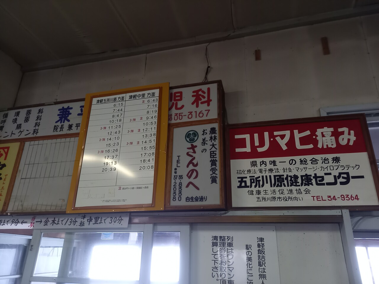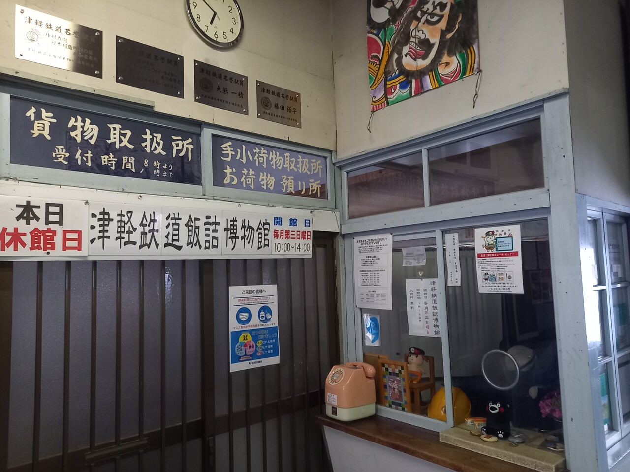 建物内部の様子です。近年まで営業をしていただけのことはあり、現役感がある出札窓口が存在感を示しています。