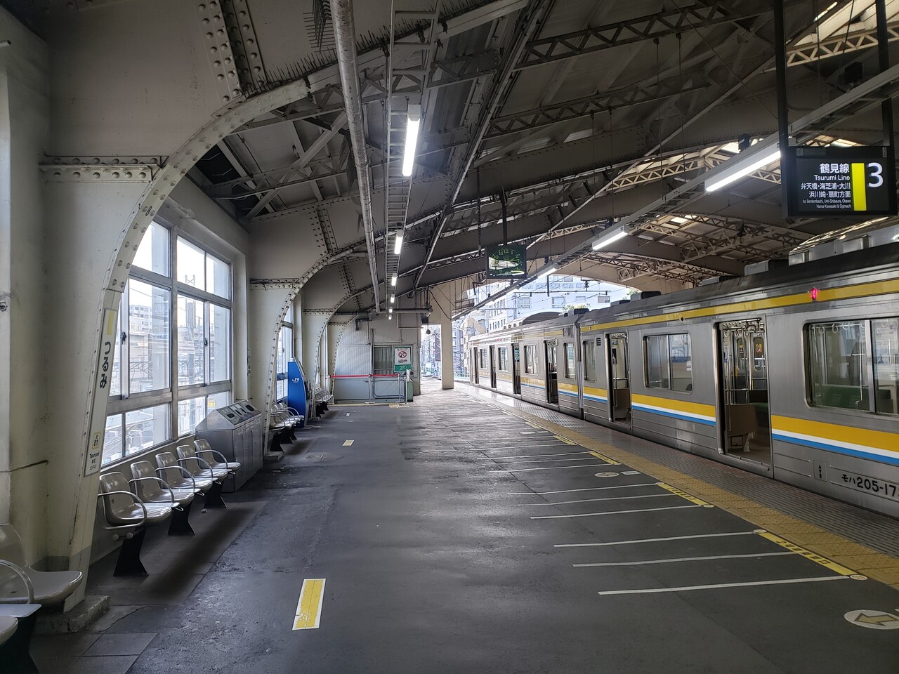 無骨な昭和の雰囲気が漂う鶴見線ホームです。