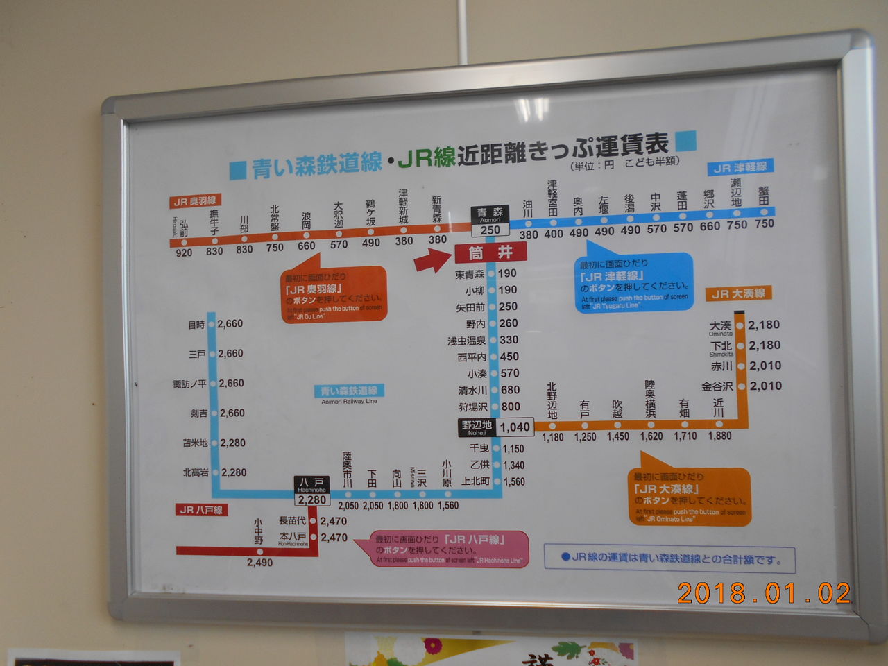 この運賃表によると青森駅から奥羽線に乗る場合と津軽線に乗る場合とで押しボタンが異なるようです。