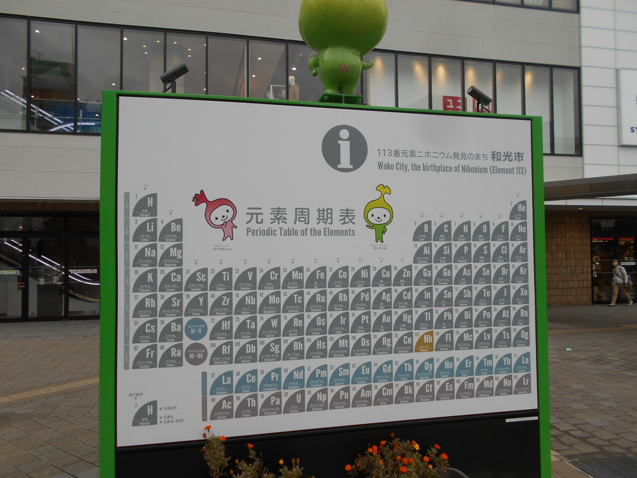 地元・和光は元素番号尾113のニホニウムを発見した理化学研究所があり、駅前にはこのような看板が建っています。