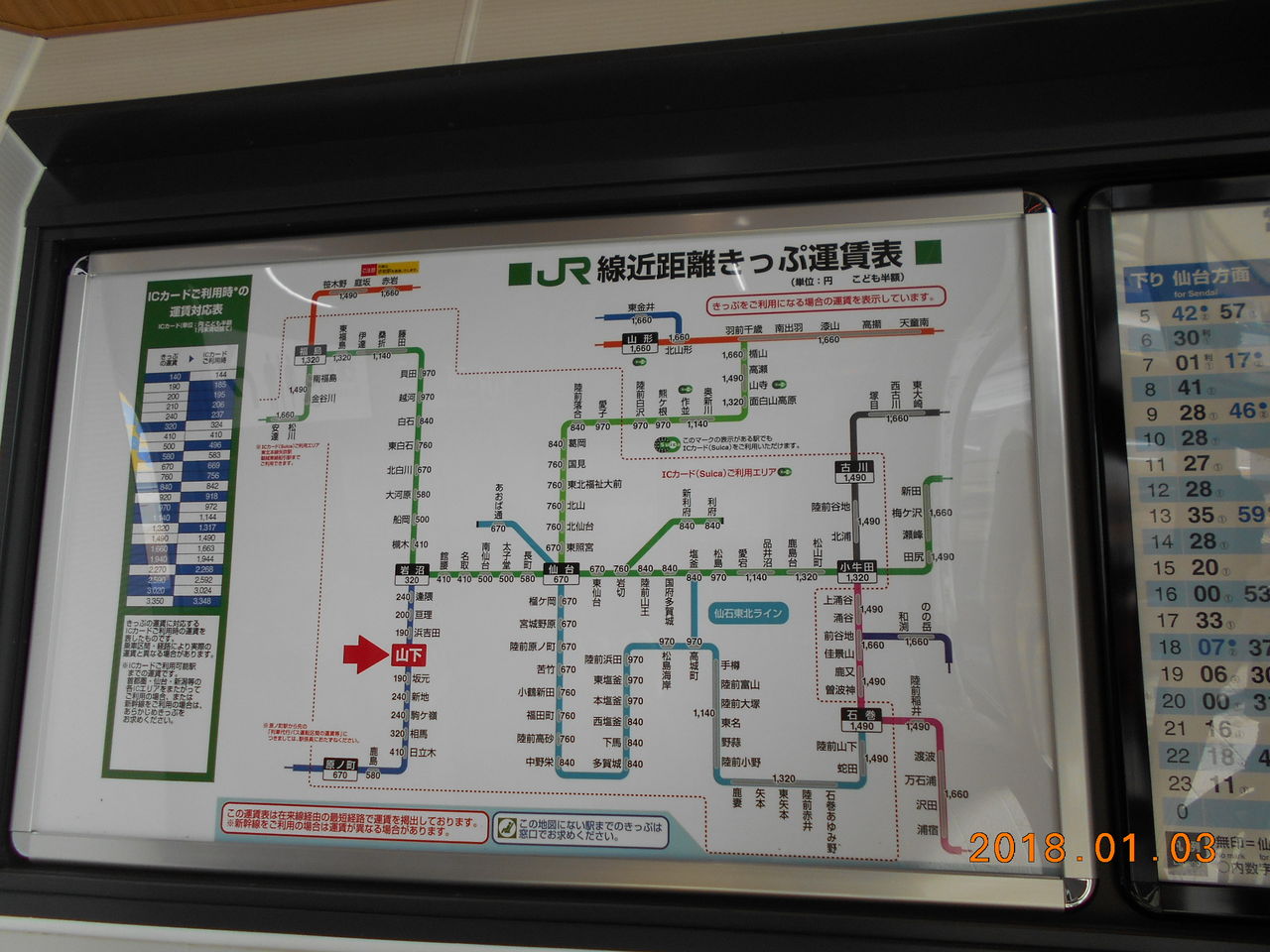 改札付近掲示の運賃表です。