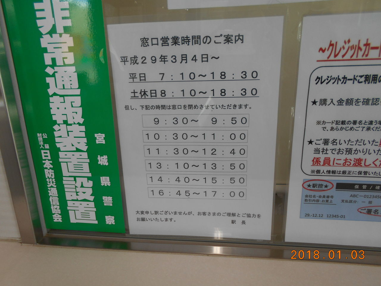 当駅の窓口業務時間はご覧の通り。意外と細かく閉鎖をする時間帯が構成されているのは恐らく当駅の要員がいわゆる「ワンオペ」で適度に休憩時間を設けなければいけないからなのかなぁ(個人の感想です)。