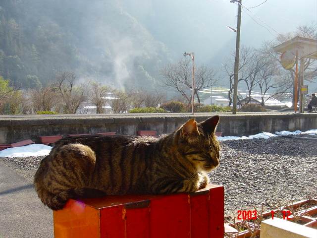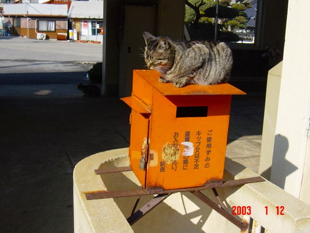 本来は待合室なんですけどね。人間様の居場所は?!という疑問は置いといて、ニャンコ好きにはたまらない駅でした。このニャンコちゃんたち、有志によって引き取られて元気に過ごしているとのことです。