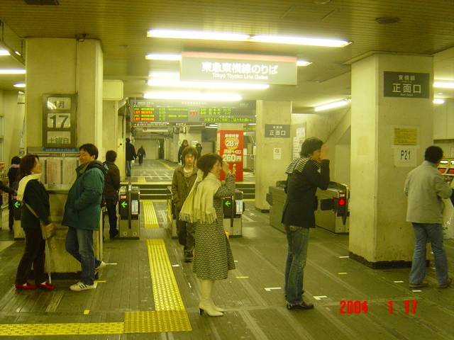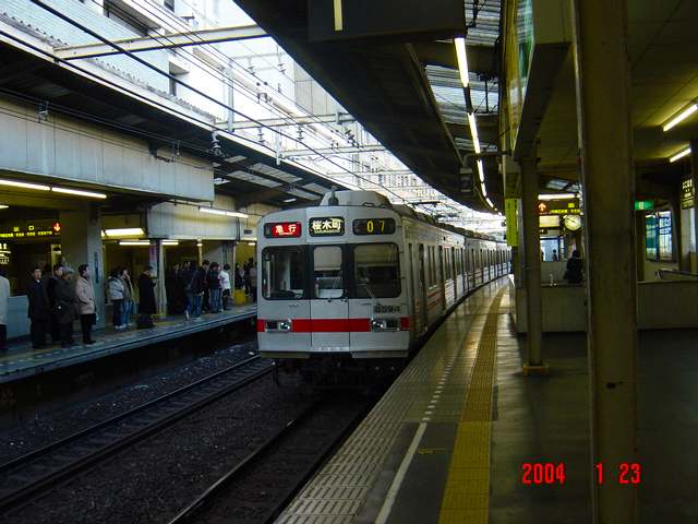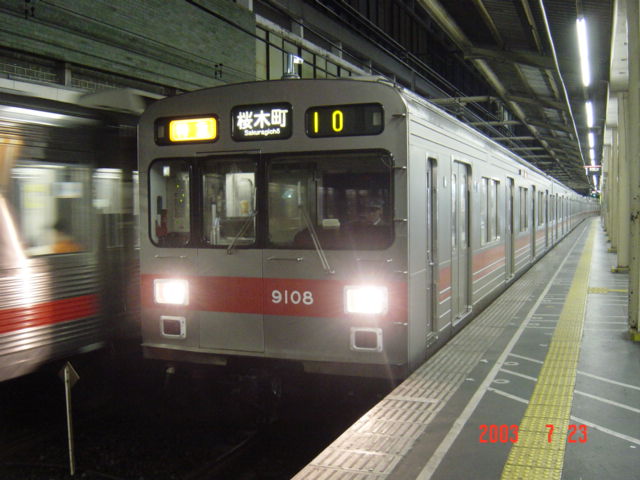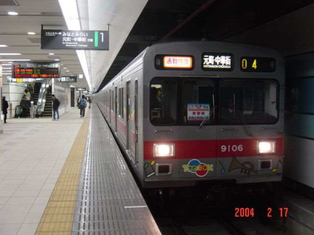 よく見るとみなとみらい線側の駅名が隠されています。これは2004年1月31日限定のもの。東横線が地下化された初日の2004年1月31日だけはみなとみらい線は未開業で、東横線の横浜から先が前日に廃止されていたので、この日だけは横浜が終点となっていたというわけです。その時の列車の様子はこれ↓